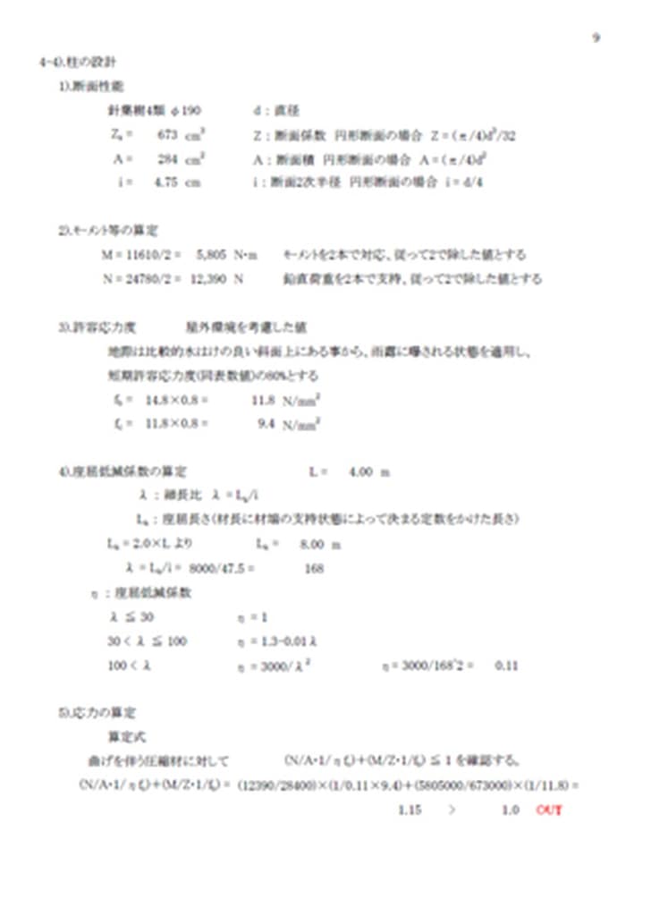 ①柱間隔が大きい「木橋」の場合を計算してみると