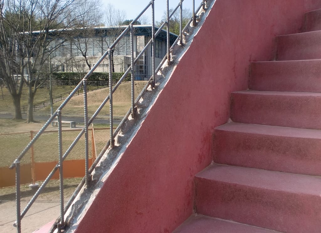 造形職人達が、改修箇所のコンクリートを丁寧にはつり、造形鉄筋や金網を新たに取り付けた後、表面を仕上げていきます。通常の左官工事とは異なり高度な技術が必要な作業となり、職人の数は激減しています。