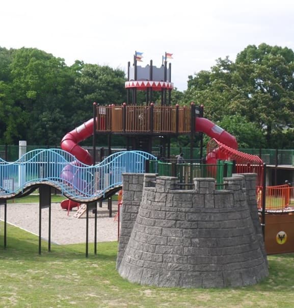 死角となっていた城壁の一部に開口部を設け、オープンな空間を創出しました。また、中央に人気の高いダブルチューブスライダーをシンボリックに設置しました。魅力的な遊具にたくさんの人が集まり、悪戯はなくなりました。