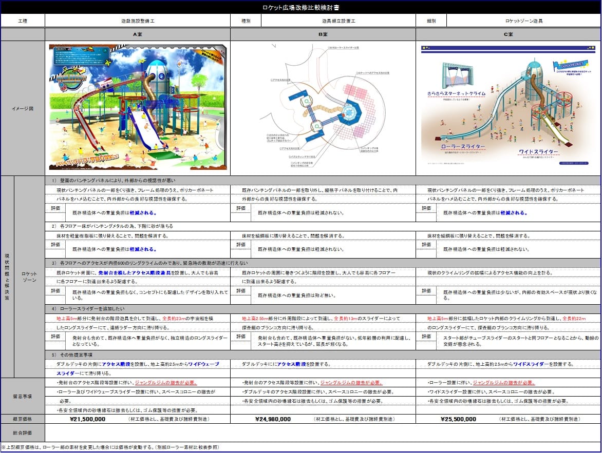 既存遊具の問題点と課題を抽出し、より楽しく安全に遊べる遊具となるように計画します。この遊具の場合、安全規準に適合しない部位が多数あり、25年以上の経過年数もあり、撤去という提案もありましたが、地域では「タコ公園」として長く親しまれ、存続を望む声が多数寄せられていました。