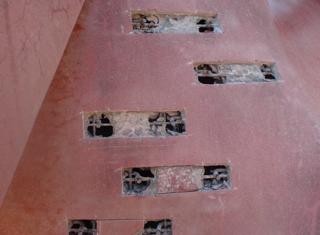 詳細な規準点検を行い、改修が必要な箇所については作図に加え、上記のようなイラストによる補助資料を作成しました。コンクリートによる造形物であることから、図面では表現できないことが多数あるからです。