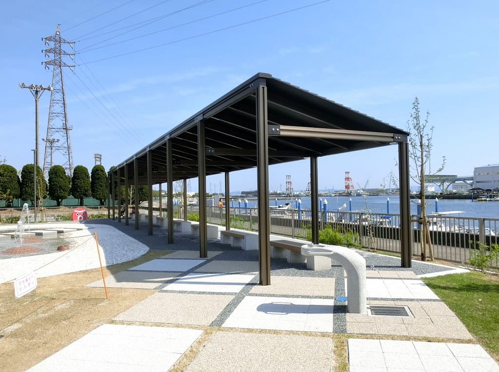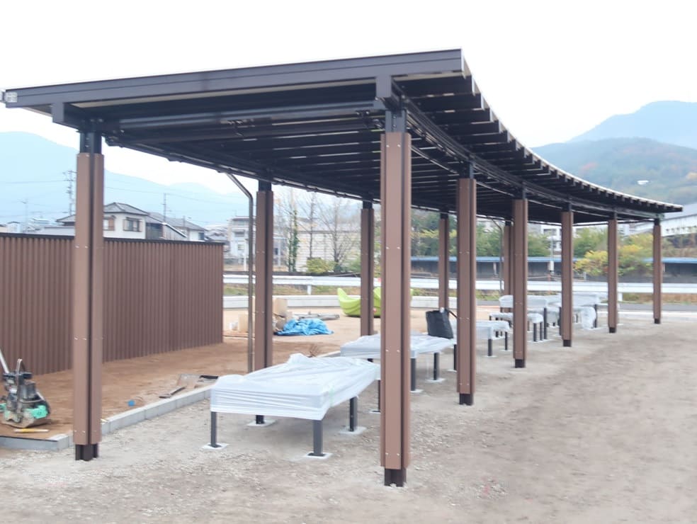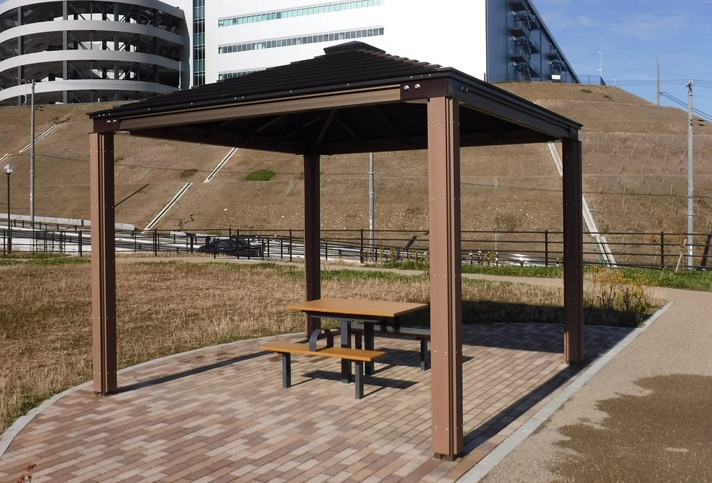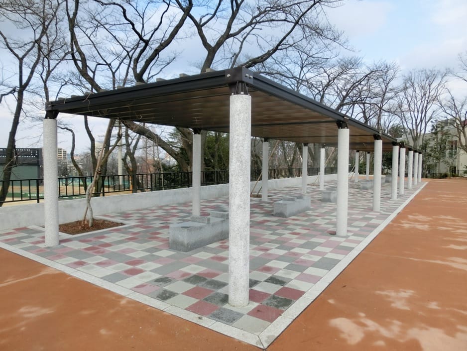 パーゴラのサイズ:W9.0m×D3.0m防災用としても使用できます。 -