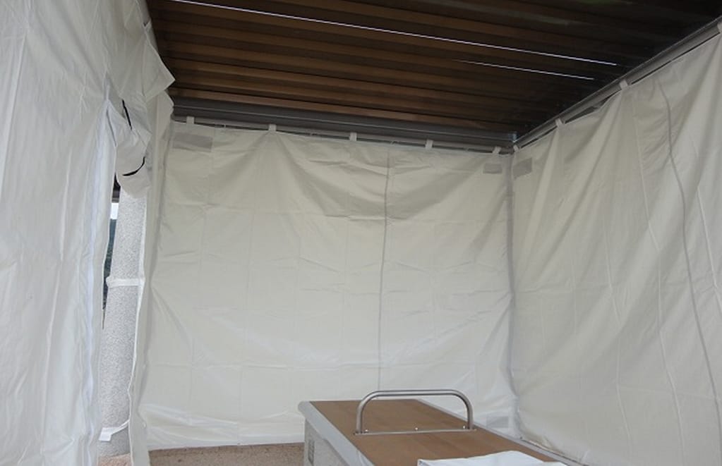 通常時は、休憩施設として使用しますが、災害時には、簡易な災害対策拠点として機能するように、側面にもテントを設営できるような構造とします。2連3連~と多連棟にも対応可能です。