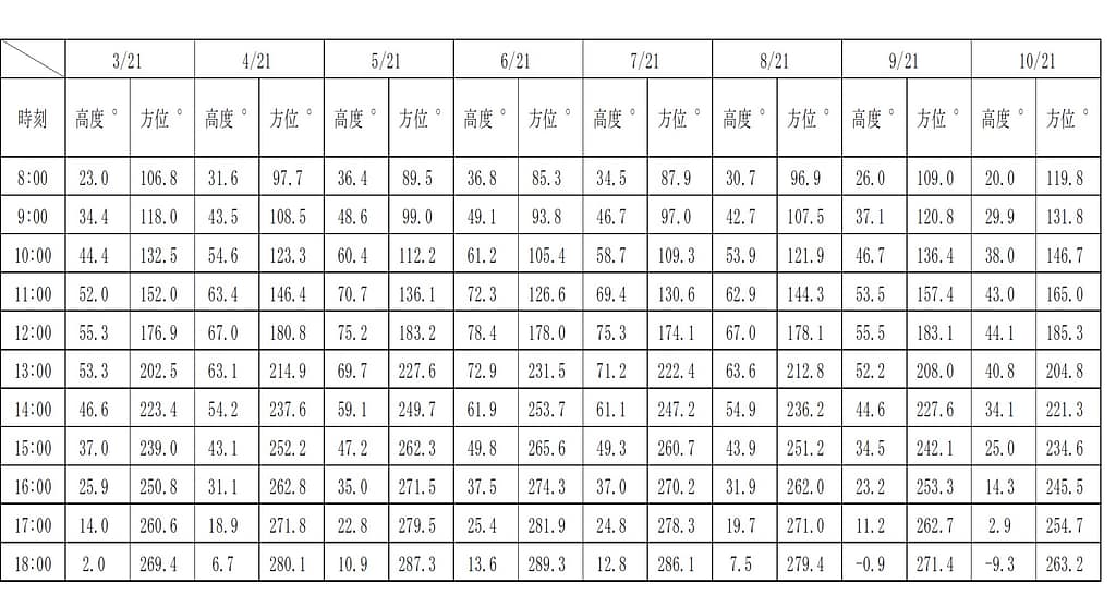 陽射しを最も有効に防ぐには、太陽高度や角度を分析することが必要です。得られた情報から、ルーバーの設置角度や設置間隔を決定します。
